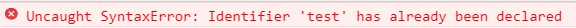 ↑이걸 실행하면 아래와 같은 에러를 만나게 될 것임. 이미 선언돼있는걸 왜 또 쓰냐는 의미임.